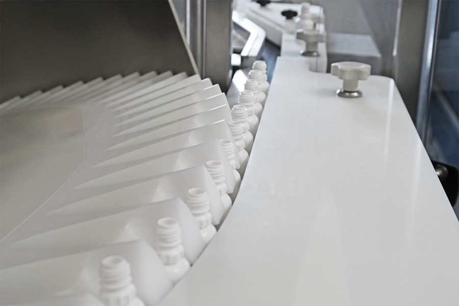 The HO-MA bottle unscramblers sort and separate plastic containers such as bottles and similar in different shapes and sizes, which are fed as bulk material. In principle, the containers coming from a storage container are sorted, set up, separated and transported to a downstream plant. In order to meet the tasks and requirements, we design your tailor-made solution