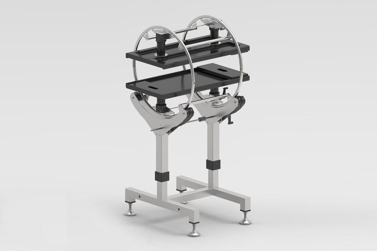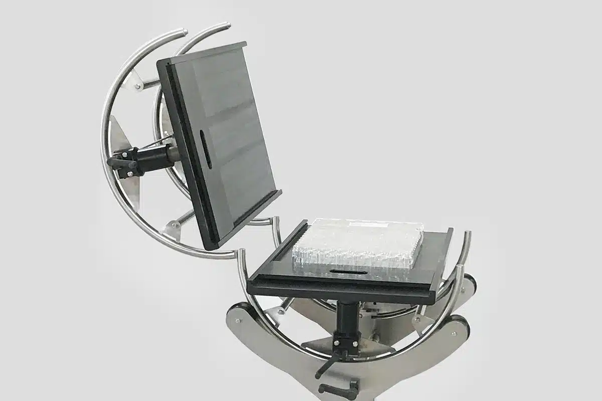 | Further product characteristics | Tabletop and slider made of plastics PETP Format adjustments by stock and locking lever Height-adjustable, up to 170mm by hand crankle, with analogue display Surface is glas pearl radiated |