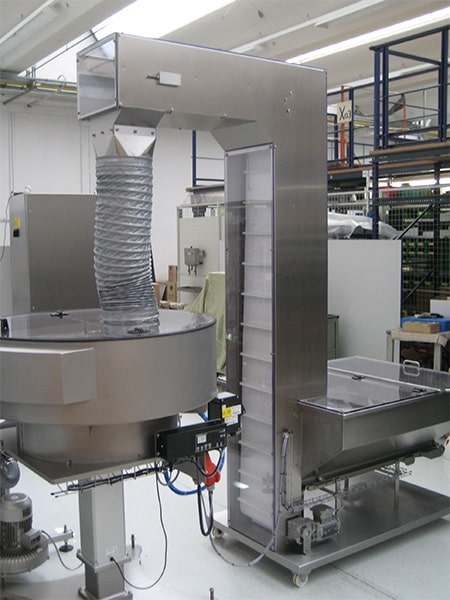 Unsere Steigförderer (Dosierelevatoren) sind für unterschiedliche Volumen ausgelegt. Produkte werden als Schüttgut nachgelagerten Maschinen zugeführt.